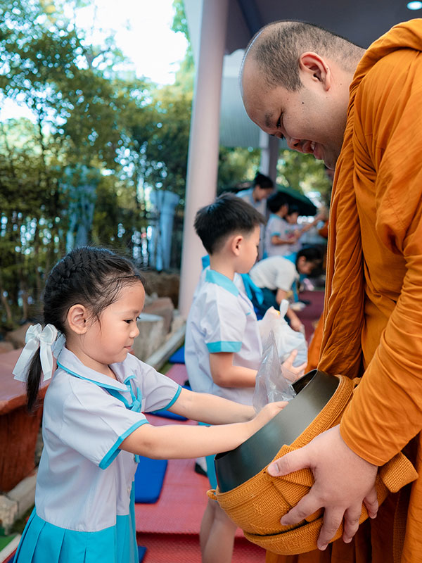 จัดกิจกรรมตามวันสำคัญทางพุทธศาสนา โดยเด็กนักเรียนจิตอาสาชั้นอนุบาล 3 เป็นผู้ช่วยจัดกิจกรรม มีพระวิทยากรที่มีความรู้ ความสามารถในการสอนเด็กปฐมวัย มาจัดกิจกรรมเกี่ยวกับคุณธรรม จริยธรรม กิริยามารยาท และการเป็นพลเมืองที่ดีของสังคม